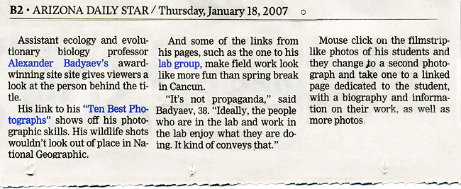 Design, maintenance, code. and non-human animal photos are by Alex Badyaev © 2002-2009